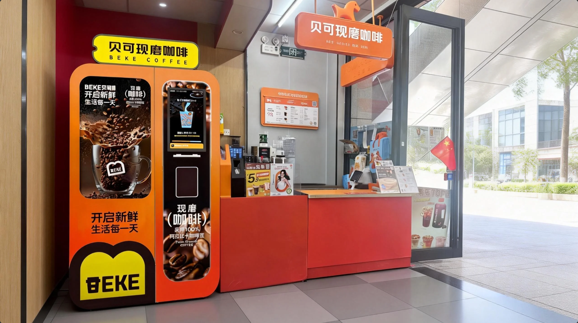 在场景化布局,数据显示交通枢纽、写字楼、医院等高流量场景贡献65%销售额,单点日均交易量达120单,验证了各场景的消费潜力,社区场景则通过现磨咖啡售卖机与其他智能零售机切入。